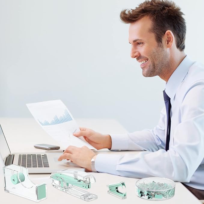 - Quality materials: the stapler, tape dispenser and stapler remover are mainly made of acrylic and metal, clear and bright; Touch smooth and comfortable, not easy to break, elegant and beautiful, very suitable for desktop office supplies