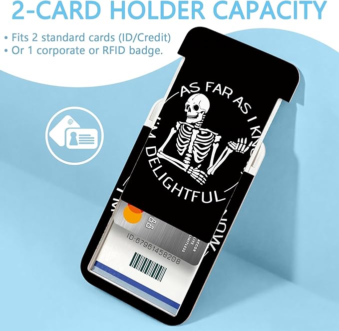 - Novelty Badge Reel: This funny skull badge reel is designed with funny arts: As Far As I Know I'm Delightful. The cute and interesting badge reel will always bring more happiness and fun to your life. You will get tons of comments on it