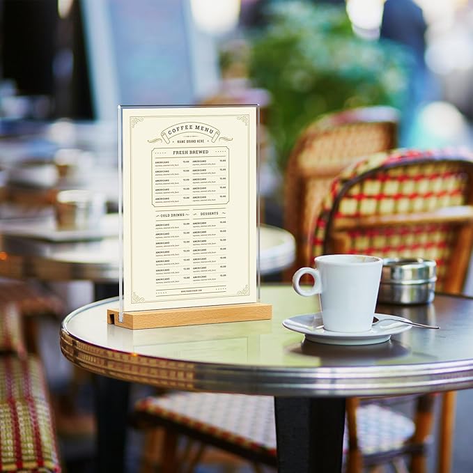 - T/L type option: Our 8.5 x 11 acrylic sign holders has two usage options: T-shaped and L-shaped, which can be used in various occasions. When you want to have a double-sided display, you can choose the T-shaped installation method. When you want to highlight one side, you only need to flip the wooden base over for installation, and you can get a brand new style L-shaped exhibition stand, which is more beautiful and convenient