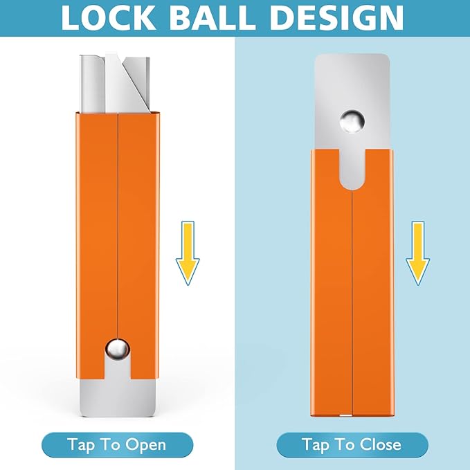- Fast-paced Operation: Tap to open, tap to close, and the blade slides completely into the outer mental sheath. And itβs a razor blade utility knife that can be used as a razor scraper for scraping off stickers or paint residue on windows, tiles, boxes, concrete, and walls.