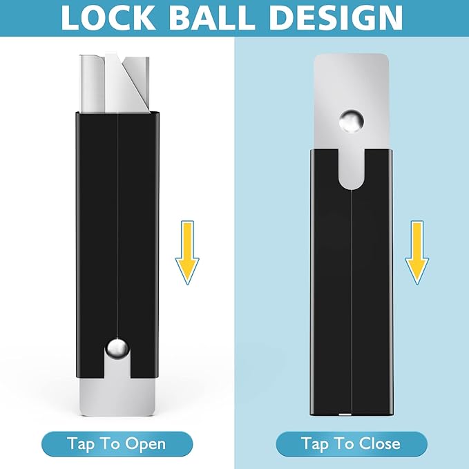 - Fast-paced Operation: Tap to open, tap to close, and the blade slides completely into the outer mental sheath. And itβs a razor blade utility knife that can be used as a razor scraper for scraping off stickers or paint residue on windows, tiles, boxes, concrete, and walls.