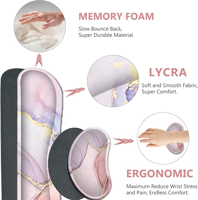 - 【ERGONOMIC DESIGN】: Keyboard wrist rest & mouse wrist support designed with comfortable memory foam and breathable material fabric, perfectly support your wrist while typing or sliding, minimizing relieve pressure and pain of your wrist, and maintaining wrist comfort and normal blood circulation.