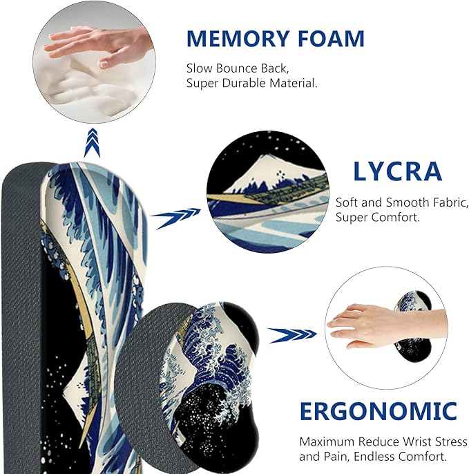 - 【ERGONOMIC DESIGN】: Keyboard wrist rest & mouse wrist support designed with comfortable memory foam and breathable material fabric, perfectly support your wrist while typing or sliding, minimizing relieve pressure and pain of your wrist, and maintaining wrist comfort and normal blood circulation.