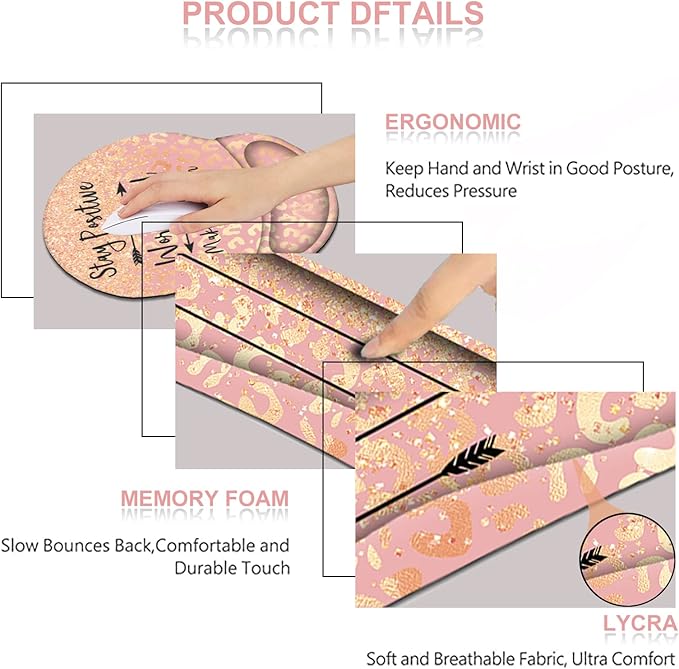 ArtSo Mouse Pad Keyboard Wrist Rest Support Ergonomic, Upgraded Cushion Mousepad Gel Memory Foam Non-Slip Rubber Base Pain Relief & Easy Typing for Home,Office, Pink Orange Stay Positive