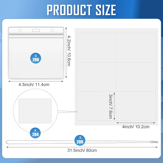 - Proper Size: our name badge holders have portable design, with size in about 4.5 x 4.2 inches/ 11.4 x 10.6 cm, suitable for cards in about 3 x 4 inches; The size of lanyard is about 31.5 x 0.08 inches/ 80 x 0.2 cm, each cardboard includes 6 pieces of label, with size in about 3 x 4 inches/ 7.6 x 10.2 cm; Please confirm the size before purchase