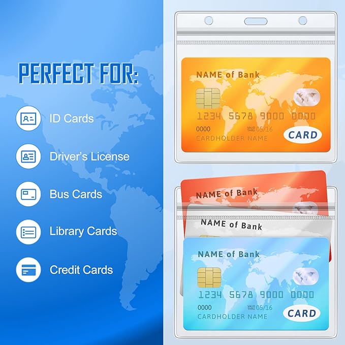 - Reliable Material: our waterproof ID card holders are mainly made of reliable plastic material, safe, waterproof, and tear resistant, they are reusable and sturdy, with smooth surface and fine workmanship, not easy to break or fade; Reliable material will serve you for a long time