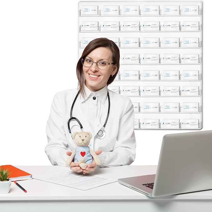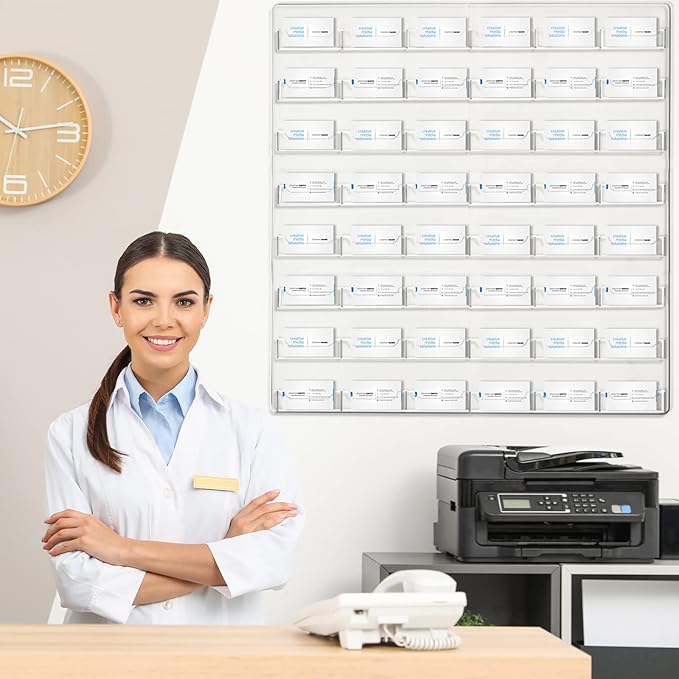 Hillban Acrylic Business Card Holder Wall Mount Clear Sticker Display Rack Multiple Card Holders Clear Acrylic Organizing Sticker Display Stand Pre Drilled(48 Pockets)