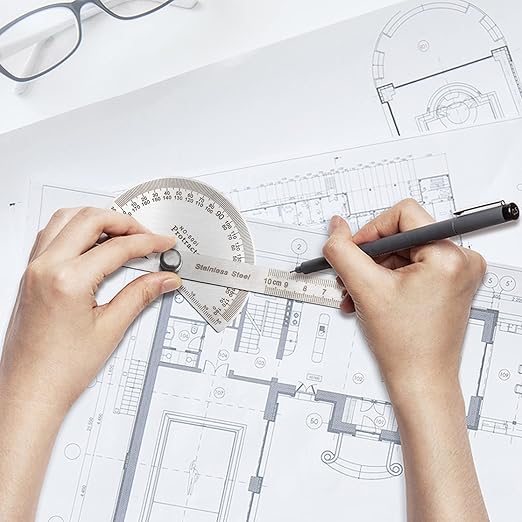 - Wide Applications : This angle ruler is a practical measuring tool for school, office, architect, suitable for for engineering, school, office, architect, and drawing who needs to measure data.