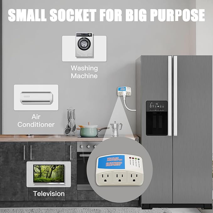 - Applicable Equipment: The voltage (surge) protector suit for Air Conditioners, Freezers, Ice Makers, Washing Machines, or any Large Appliances