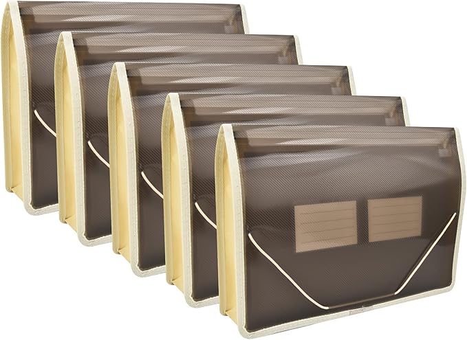 Expanding File Folder Document Organizer r with Flap and Cord Closure, Waterproof Transparent Document Bag, 2.8" Expansion, Letter A4 Expandable File Folder for Home School Office Organization,5 Pack