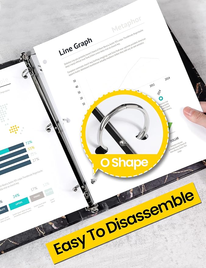 - 3 RING BINDER: 1 inch binders 3 ring are Black marble pattern. The lamination treatment of the cover of the binder shows gloss. Foil grain to the pretty binder brings a high quality feel and a more elegant look. Say goodbye to the traditional monotonous design, how can you not love such a more attractive 1 inch binder