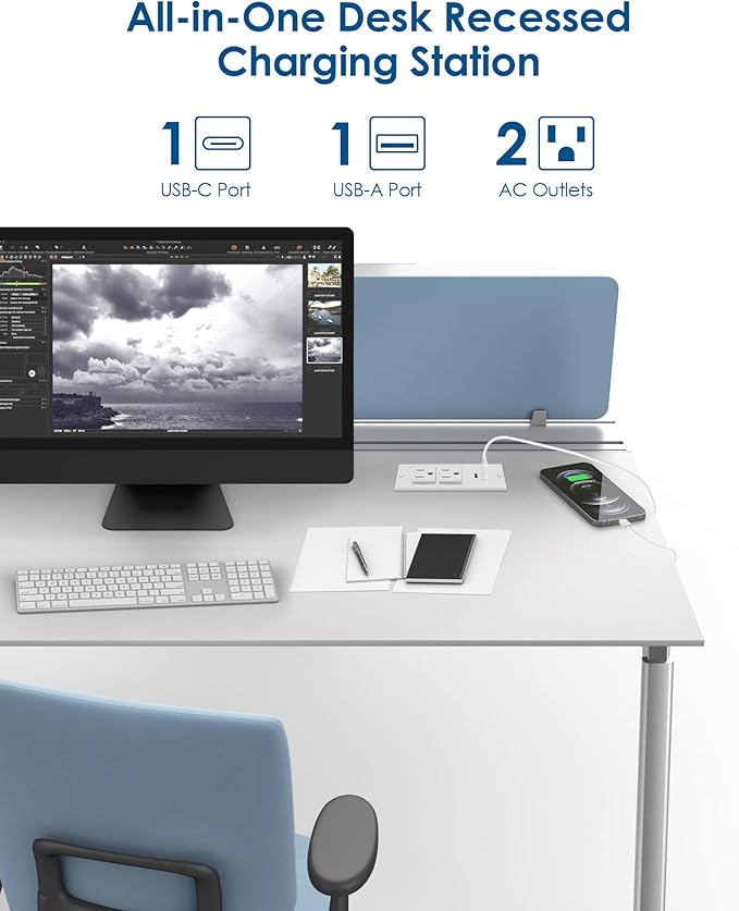 - Easy to Assemble & Mini Size: According to the size of the picture,cut a rectangle in table, place the recessed outlet in then screw it tight.Hole cut size: L 3.79" * W 1.68" * H 1.57".Creative flush mount desktop design space saving.Mounts nearly flush into any surface.
