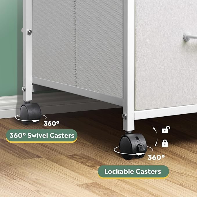 - Easy to Move: Rolling on 4 wheels, this mobile file cabinet can fix or move around your home office freely. Built-in brakes on front 2 casters to keep it in position and add stability. Unique fabric drawer design makes it only weigh 22 lbs. and light to move.