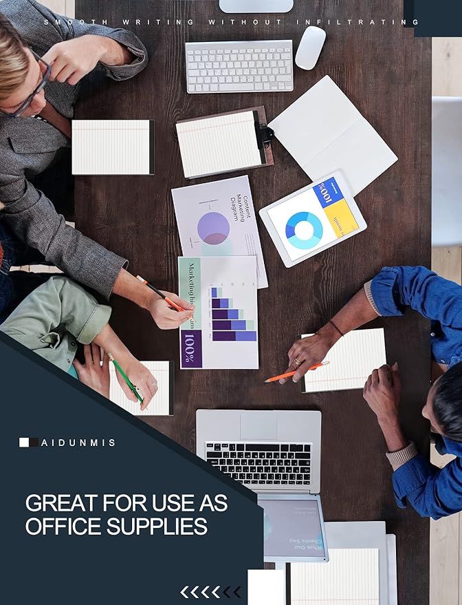 - [KEEP NOTES SECURE]: Each lined notepads 5x8 has black top bindings. The 5 x 8 legal pads perforated top edge allows for easily and neatly removing individual sheets of paper. Small white lined pads of paper 5x8 has sturdy header and bindings keep the pages of your crucial notes protected, your legal pad won't fall apart under pressure like some lesser lined notepads 5x8. White notepads have cardboard backing for extra support, lined paper pads 5x8 perfect for writing on the go.