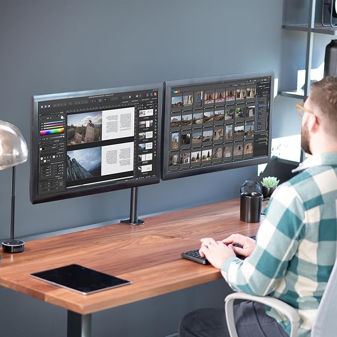 - Fits 13" to 32" Screens: Dual monitor mount fitting two screens 13” to 32” in size and up to 22 lbs in weight each with VESA 75x75mm or 100x100mm backside mounting holes