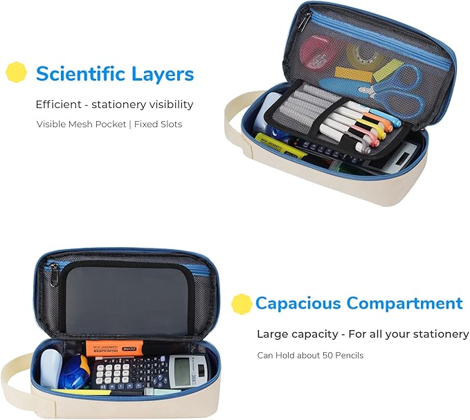 - PREMIUM MATERIAL: The pencil box has a 3 Layer Fabric Structure with neat orderliness and sturdiness. The exterior is made of high-quality 1000D Oxford fabric with comfortable texture, water resistant and impermeable, and scratch resistant. The interior 6 mm foam liner provides softer support and protection for your items. Double zippers with silicone tips are smooth and easy to grip