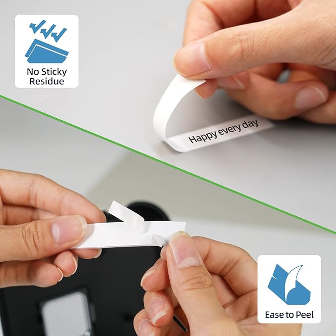 - This label maker tape have split backing design which make it is easy to peel off, compatible with brother p touch lable tape has a strong adhesive, it can be firmly stucked to the surface of the object and will not appear curled after a long time , at the same time it will not leave glue stains on the surface of the object when it is removed.