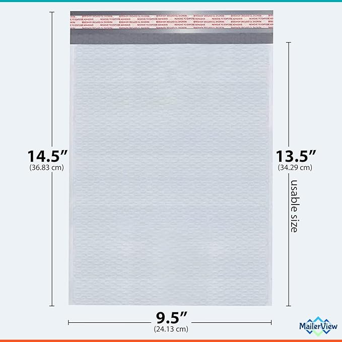 - 9.5x14.5, Poly Bubble Mailers, #4, Large, Made in USA, Padded Envelopes, Bubble Envelopes, Packaging Mailer, Shipping Bags for Small Business, With Self Seal Tape, Usable size 9.5x13.5, 100 Pack