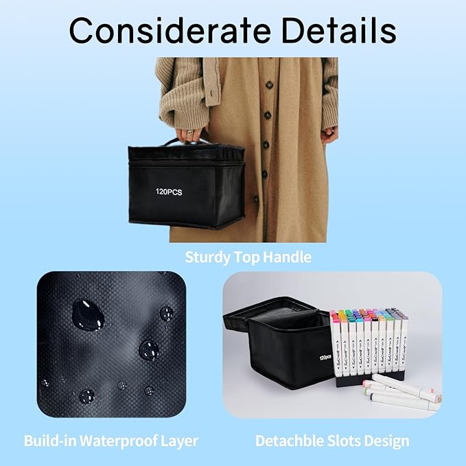 - Cool Gifts Idea- Alcohol based markers will come with a durable zipper carry bag for storing and easy travel. Bottom organizers keep art pens for artist up straight in order. Alcohol pens are ideal for adults, students, artists, hobbyists, and beginners. A cool gift idea for Christmas, a new semester, birthday etc.