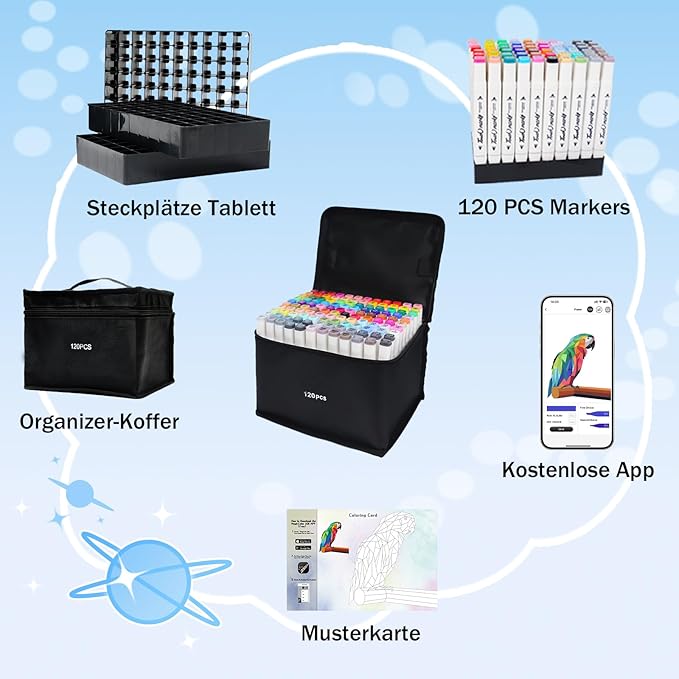 120 Colors Alcohol Markers, Art Markers for Artists with Coloring App, Dual Tip Marker for Adult Painting Sketching Drawing with Travel Case Great Gift Idea
