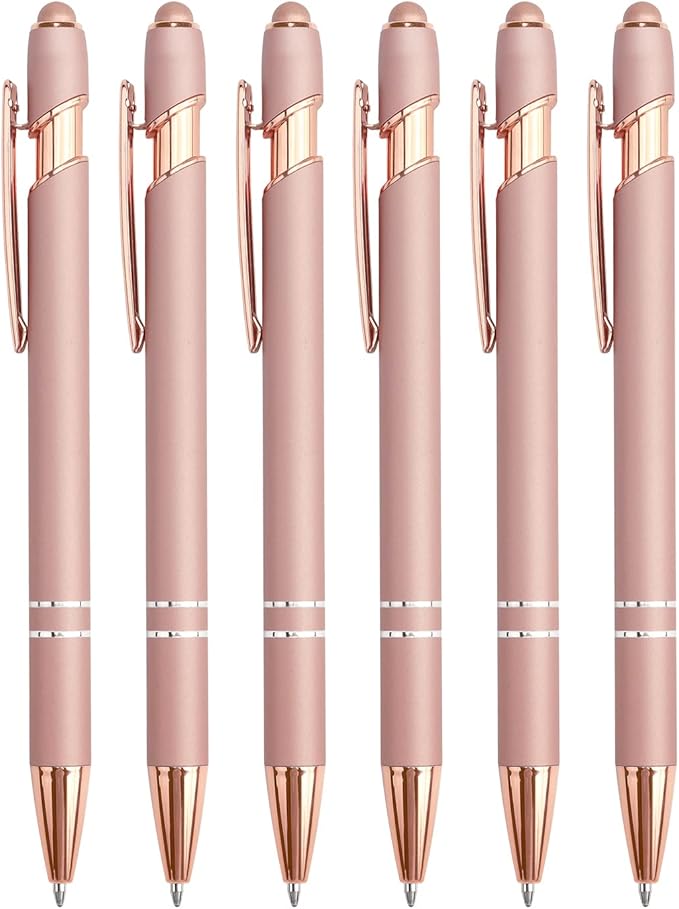 6 Pack Ballpoint Pen 2-in-1 Stylus Retractable Ballpoint Pen with Stylus tip, Metal Stylus Pen for Touch Screens, 1.0 mm Black Ink