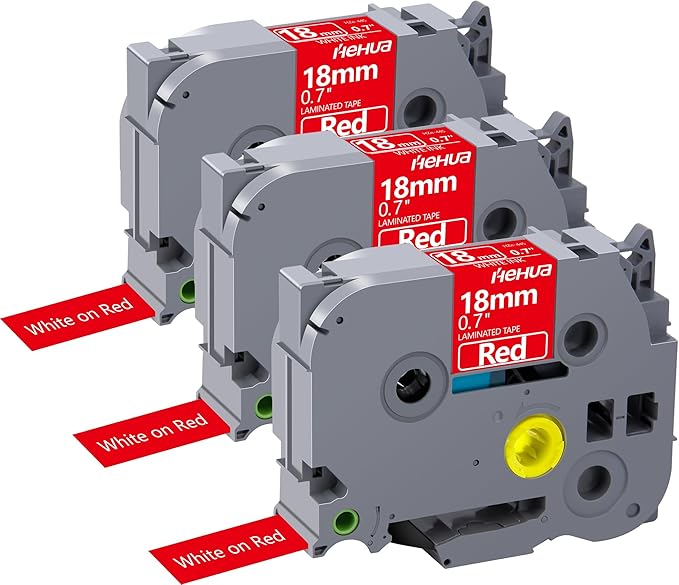 Hehua 18mm 0.7 White on Red Laminated Tape Compatible for Brother Label Maker Tape TZe-445 TZe445 TZ-445 TZ445 for P Touch PT D400 D450 D600 D610 P710BT, 3/4'' x 26.2ft White on Red, 3 Pack
