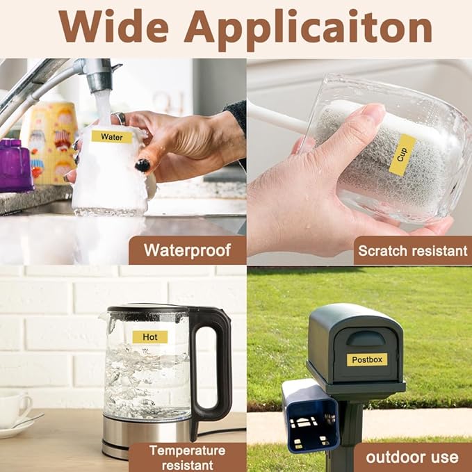 - Wide application: Compatible for Brother P-touch TZe 841 label tape is ideal to print clear, good-looking and durable labels. These labels are great for shelving, kitchen use, cabinets, file folders, USB sticks, food containers, storage boxes, personal possessions, children's school equipment with it's superior adhesive