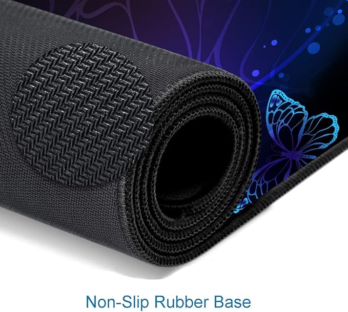 Gaming Mouse Pad, Large Mouse Pads for Women, Non-Slip Rubber Base Mousepad, Keyboard Mouse Mat, Desk Pad with Stitched Edges, 31.5x11.8inch, Purple Butterfly