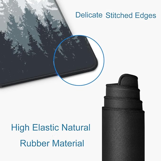 Gaming Mouse Pad Large, Keyboard Mouse Mat Desk Pad, Non-Slip Rubber Base with Stitched Edges Mousepad, 31.5X11.8 inch Misty Forest Tree