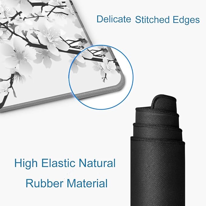 Gaming Mouse Pad, Large Mouse Pads for Desk, Non-Slip Rubber Base Mousepad, Keyboard Mouse Mat Desk Pad with Stitched Edges, 31.5x11.8 inch Sakura Death Life Floral