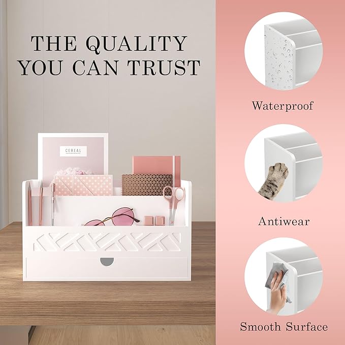 - 【Includes Drawer】Additional storage for your files, letters, magazines, pens, stamps, paper clips and more for your office desk organization! Or you can use the drawer as a key holder