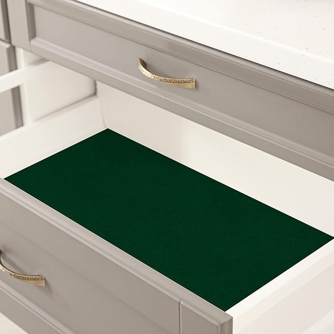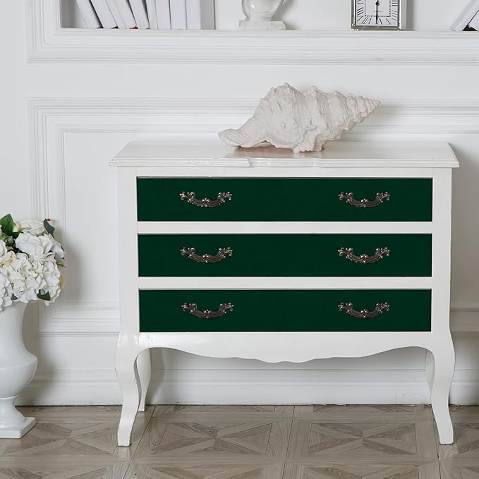 - [ Multipurpose ] - The green flocking contact paper is widely used for home decoration, old furniture renovation and art & craft making, such as drawer liner, jewelry box, cabinet, dresser, showcase, photo frame, bulletin board, gift wrapping, DIY projects. Ideal for bedroom, girls room and dressing room