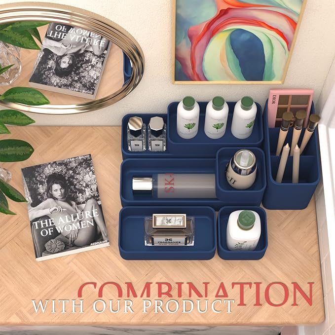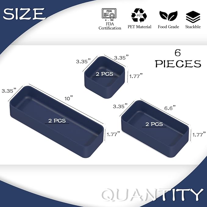 - 【STURDY AND DURABLE】 The desk drawer organizer set are made of durable PET plastic, ensuring a long life of use. Drawer organizer bins are break-resistant and could accommodate different items keeping the organizer nice and steadily stacked.