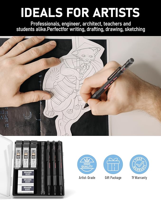 - 100% RISK FREE PURCHASE: If you are not satisfied with Nicpro mechanical pencil set , we’re very happy to either provide a no-questions-asked Refund or Replacement. Order today risk free Tips:For 0.9mm models, use only one lead at a time for best performance