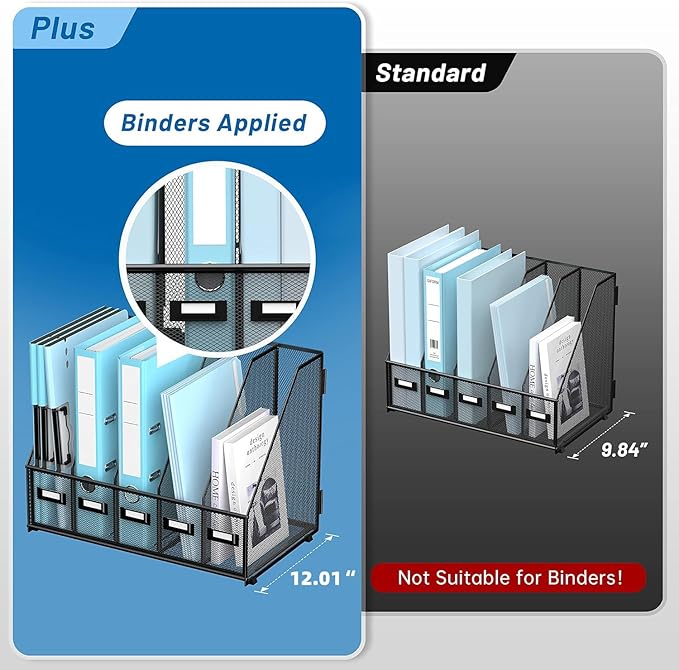 - [Ultra-Large Capacity] The SUPEASY magazine file holder plus boasts a storage capacity greater than the standard. 16.34" x 12.01" x 12.4",This desk organizer designed to comfortably accommodate standard-sized binders.