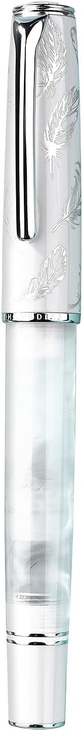 - ✅ Elegant Design - The pen cap is plated with silver feathers through jewelry processing. A cute bird is also engraved on the top. The white acrylic pen body is crystal clear, like ripples of clouds, and shows gorgeous and delicate texture in the light.