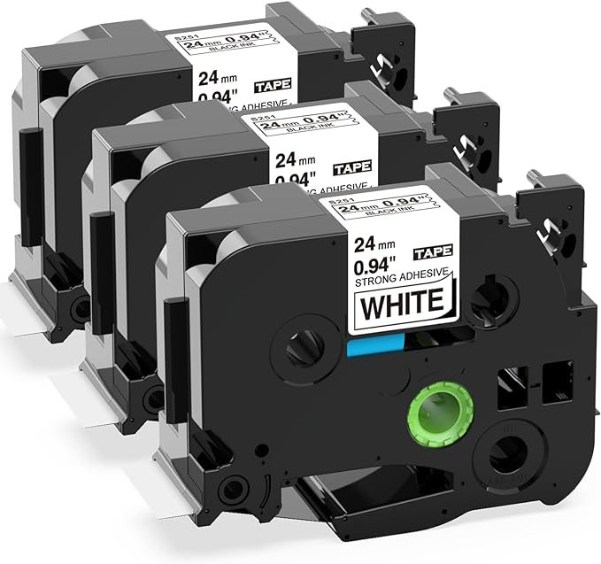 - Color: Black on White, 3-Pack Replacement for TZe-S251 Extra-Strength Adhesive Laminated Tape. Size: 24mm x 8m (0.94 Inch x 26.2 Feet)