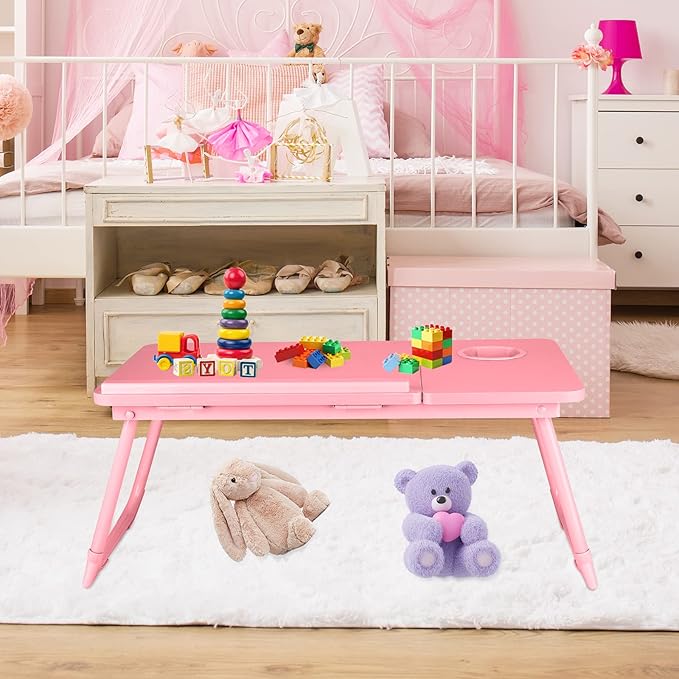 CloudTrip Laptop Desk for Bed or Couch, Lap Desk, Woking in Bed Desk, Home Office Desks, Breakfast Tray, Desk with Cup Holder, Watching Movies in Bed, Laptop Stand for Bed, Fordable Legs Desk (Pink)