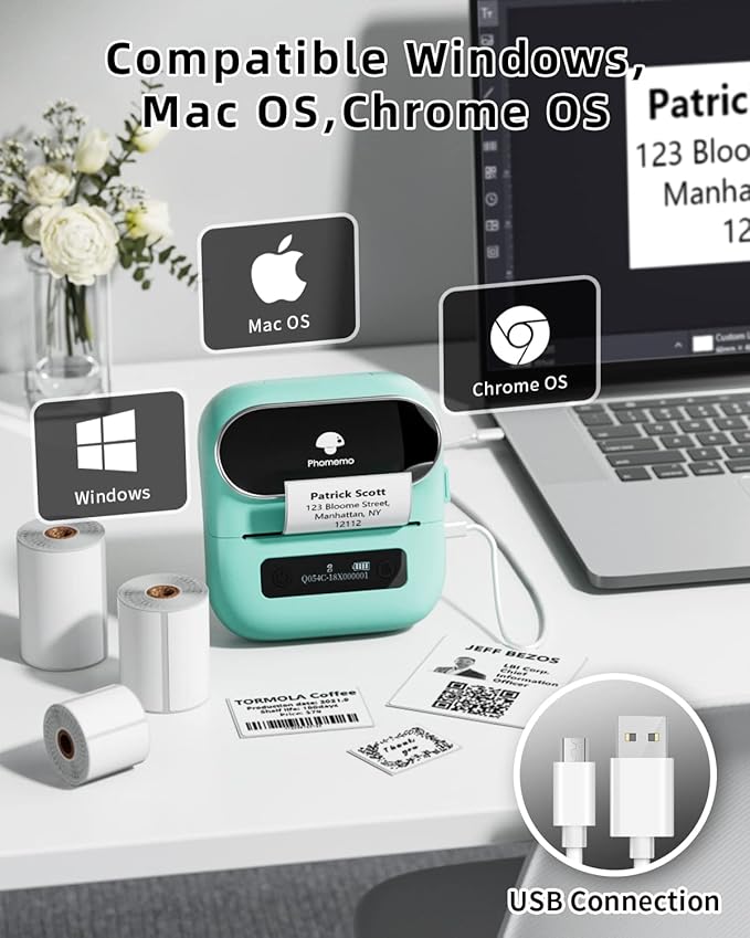 - High Compatibility - The Phomemo M220 label maker machine boasts excellent compatibility. It supports Bluetooth wireless connectivity to smartphones and tablets and USB wired connectivity to PCs (Windows, macOS, and Chrome, but not Linux).