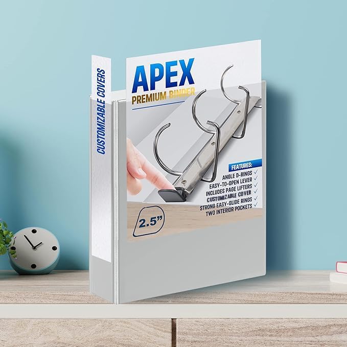 - Strong Easy-Glide Rings — The 2.5-inch ring binder is a great choice for storing, organizing and protecting your important papers. This 3-ring binder features clear plastic sleeves dividers to help you organize your documents, photos and even loose sheets in standard sizes. The durable, white coated covers are easy to write on, plus the inner pages are perforated to separate different types of paper.