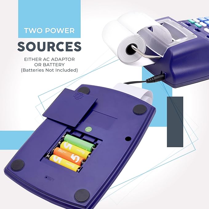 - [TWO POWER SOURCES] - An AC adapter is included so you never have to worry about running out of power. However, if you want to travel, this calculator is also for you. It supports 4 AA batteries (not included), giving you the option of mobility.