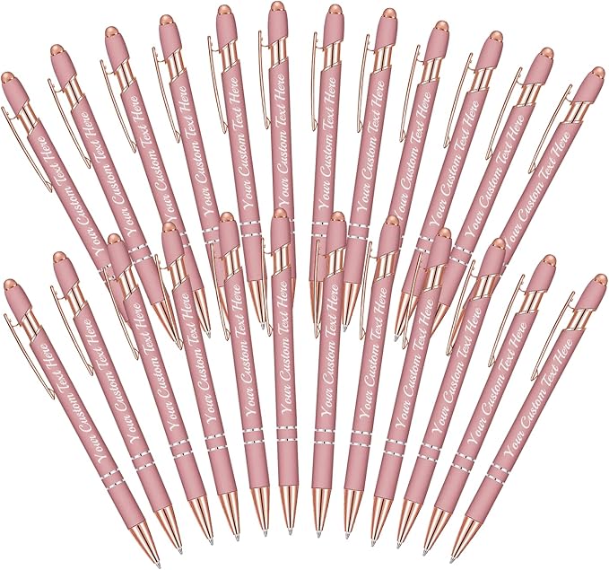 Personalized Ballpoint Pen 24pcs, Custom Pens Free Engraved Bulk with Name Logo, Soft Black Ink Stylus with Touch Metal Office, Gift for Anniversaries, Graduations, Birthdays