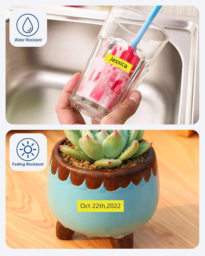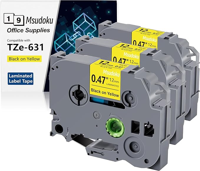 - These compatible for brother label maker tape 12mm 0.47 TZe-631 TZe631 have strong adhesive and no sticky residue when you remove it. The split back design of ptouch label tape 12mm yellow tape is very easy to peel off
