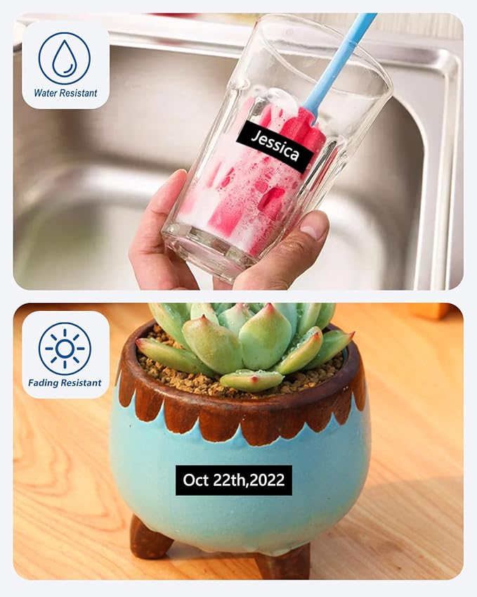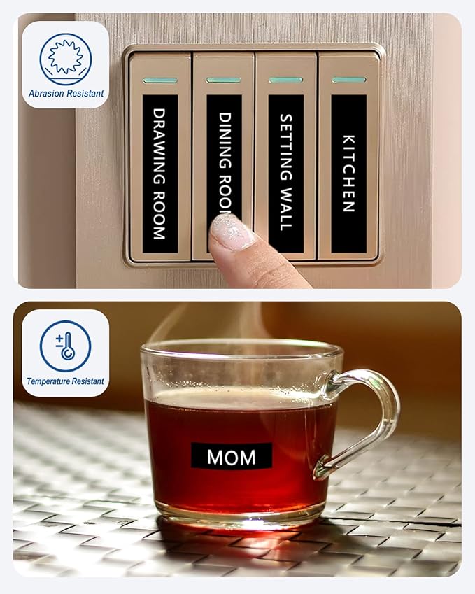 - These compatible for brother label maker tape 18mm 0.7 TZe-345 TZe345 have strong adhesive and no sticky residue when you remove it. The split back design of ptouch label tape 18mm black tape is very easy to peel off