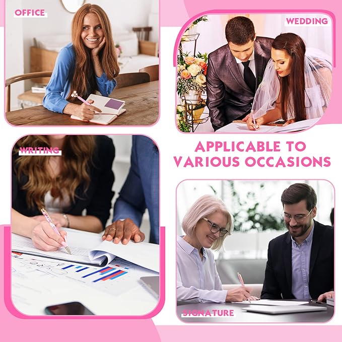 - Generous and Cute: the rose gold diamond pens for wedding are decorated with different elements such as butterfly, heart, diamond and more, delicate and attractive in appearance, so they will win the love of most girls and women