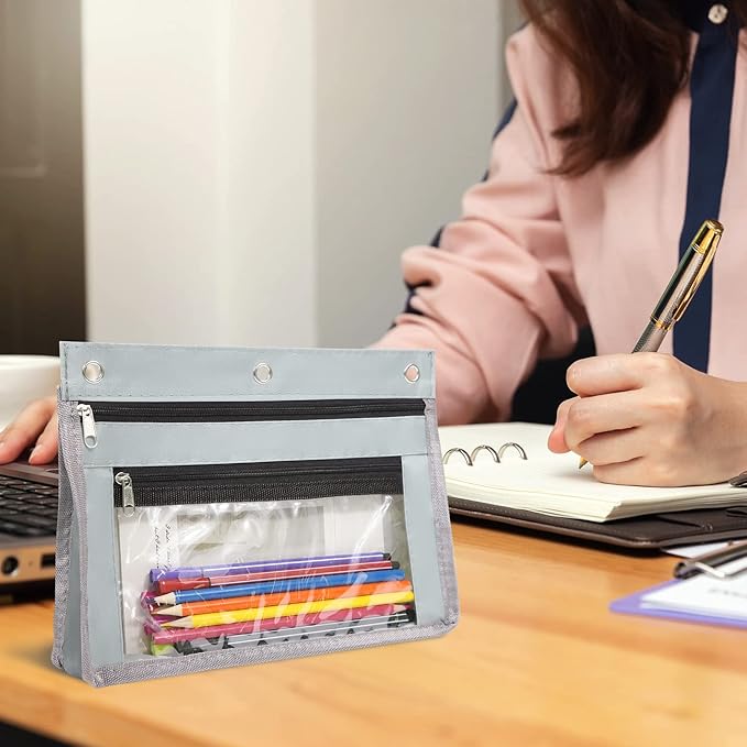 - [3-Ring Pencil Pouch]: The zippered pouch with rivet holes is perfectly compatible with all standard 3-ring binders and is widely used in universities, schools, offices and homes.