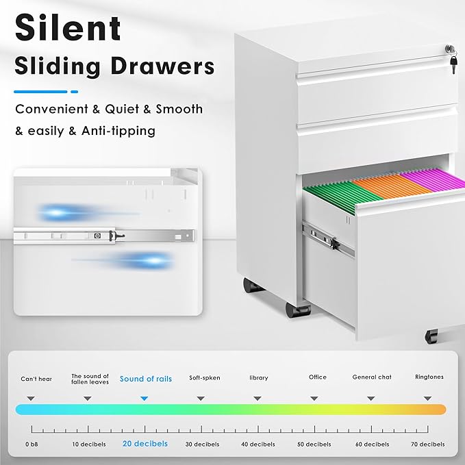 - ❤Lockable Mobile File Cabinet: 3 Drawer filing cabinet The filing cabinet comes with a manual at the factory, and the assembly process is as simple as splicing building blocks, and it can also exercise hands-on ability.1 lock secures all the three drawers.Tips: 2 keys should be kept separately in case of losing.