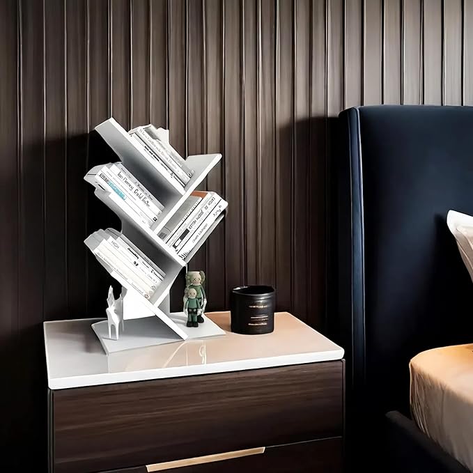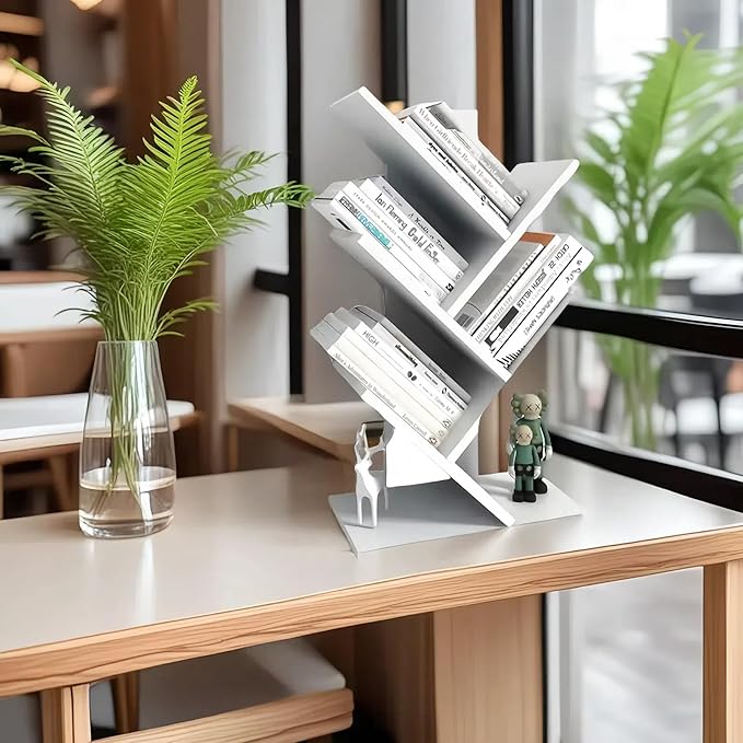 - 【Stylish & Space-Saving tree bookcase shelf Design】Tree book shelf size: 23.6"H x 12.2"L x 6.7"W,Larger in size compared to similar bookshelves on the market, you can compare the dimensions with other similar products available.Elevate your space with this artistic 3 tier tree bookshelf, combining natural charm with modern functionality. Its compact footprint fits perfectly in tight corners while showcasing books, decor, or plants like a decorative centerpiece.