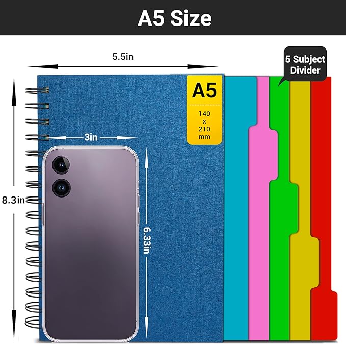 - 【Colored 5 Subject Dividers】5 different color tabs divide the sectioned notebook into 5 parts, easy for you to reach to each part and also you can write notes on each divide pages.