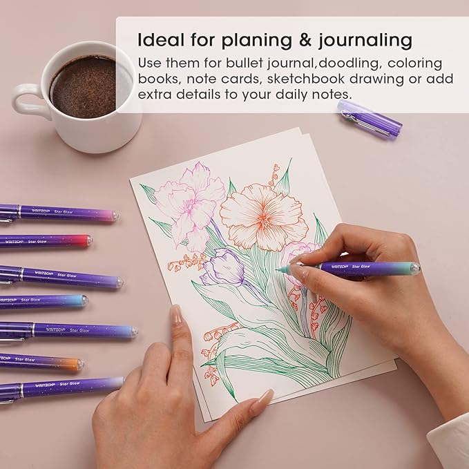 WRITECH Liquid Ink Rollerball Pens: 8ct Assorted Colors Extra Fine Point Tip 0.5mm Rolling Pen for Smooth Writing Coloring Drawing Journaling No Bleed & Smear &Smudge Multi Colored